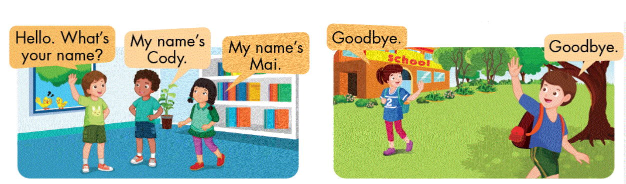 - Hello. What’s your name? (Xin chào. Bạn tên là gì?)