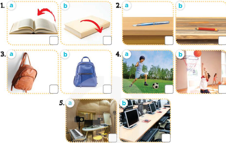 1. Look and tick. 2. Listen and number. 3. Read and match. 4. Look, complete and read. 5. Ask and answer.