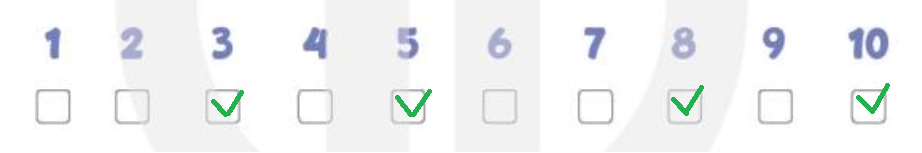 Three. Five. Eight. Ten. (Số 3, số 5, số 8, số 10.)