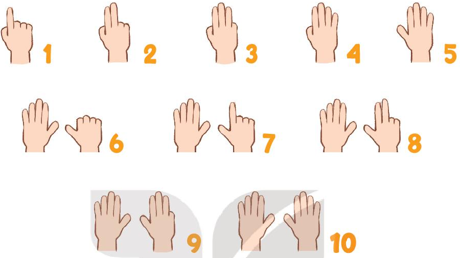 Đếm từ số 1 đến số 10 và giơ số ngón tay tương ứng với số đang đọc.