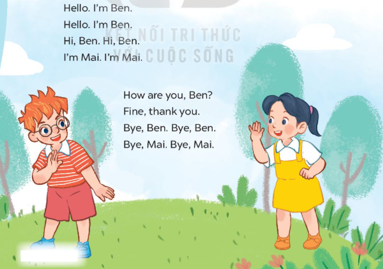 1. Hi. I’m Ben. 2. Hello, Mai. 3. Goodbye, Ben. 4. How are you? |