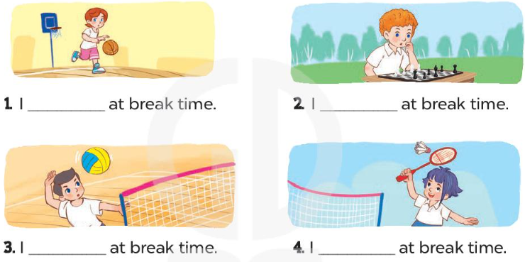 I play basketball at break time. (Tôi bóng rổ vào giờ giải lao.)