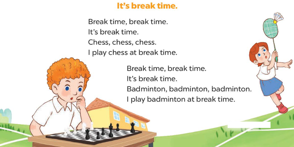 (Đến giờ giải lao rồi. Chúng ta chơi cờ đi.)