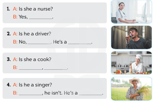 B: No, he isn’t. He's a singer. (Không phải. Anh ấy là một ca sĩ)