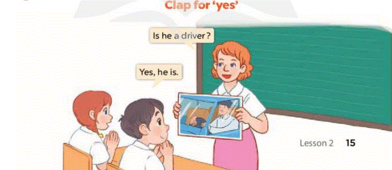 Ví dụ, cô cầm thẻ và hỏi: “Is he a driver?”, học sinh sẽ vỗ tay và nói: “Yes, he is.”
