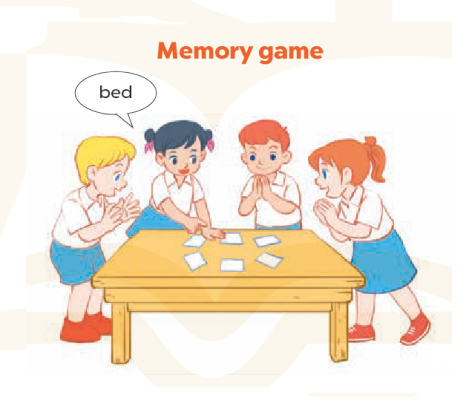 Cách chơi: Lật úp tất cả các thẻ hình có chứa cái từ đã học xuống bàn. Mỗi bạn sẽ đoán đó là từ vựng gì trước khi giở thẻ lên xem.