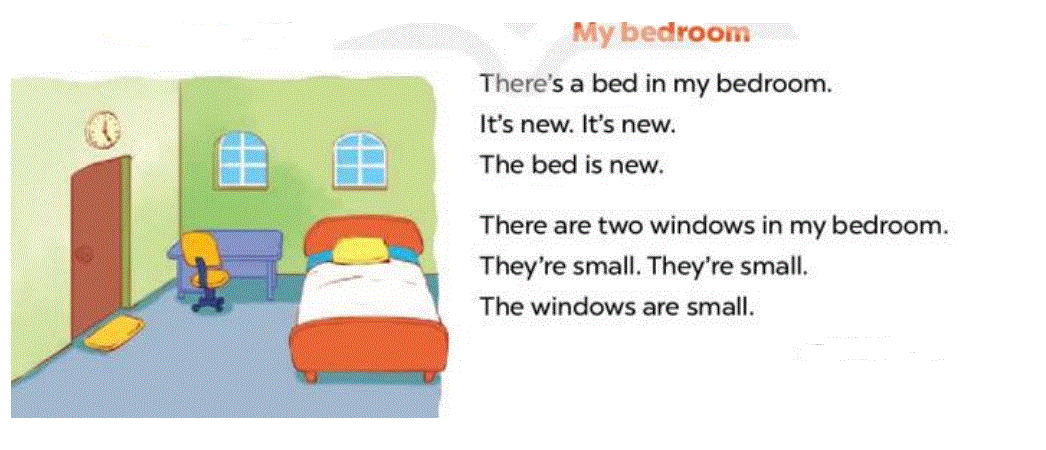 (Có một chiếc giường trong phòng ngủ của tôi. Nó nhỏ.)