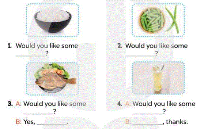 a.Would you like some beans? (Bạn có muốn một ít đậu không?)