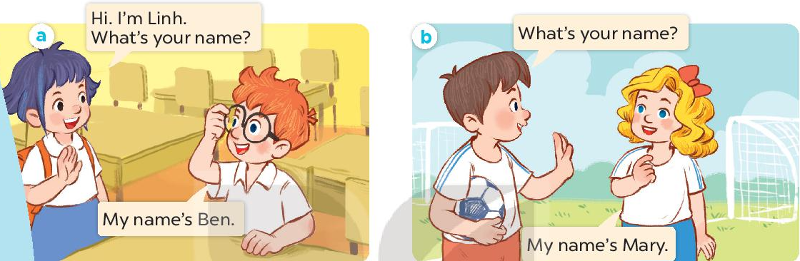 2. Mai: Hi. I'm Mai. What's your name? (Chào. Mình là Mai. Bạn tên là gì?)