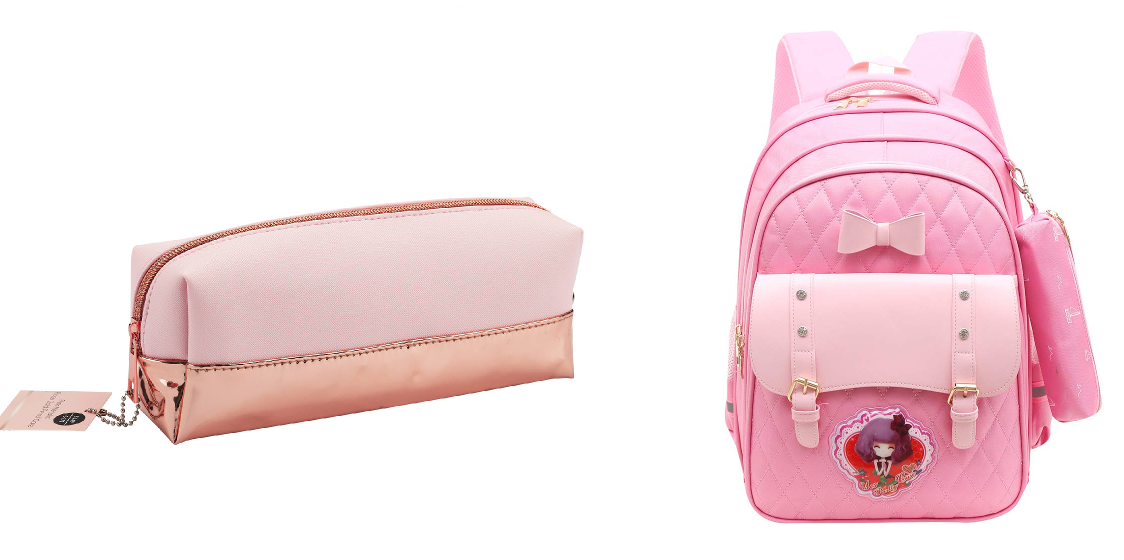 I have a pink schoolbag and a pink pencil case. (Tôi có một cái cặp sách màu hồng và một hộp bút màu hồng.)