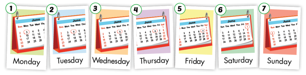 Cách chơi: Các bạn đứng thành vòng tròn và quay mặt vào nhau. Bắt đầu trò chơi, các bạn sẽ đọc lần lượt các thứ trong tuần. Bạn đầu tiên sẽ nói thứ hai “Monday” và chỉ tiếp một bạn bất kì. Bạn được chỉ phải nói nhanh thứ ba “Tuesday” và chỉ một bạn bất kì khác. Bạn khác được chỉ định sẽ nói thứ tư “Wednesday”. Bạn được chỉ phải phản xạ nhanh và nói đúng thứ và chỉ nhanh một bạn bất kì nào. Nếu bạn nào nói sai thứ thì sẽ bị loại khỏi vòng chơi.
