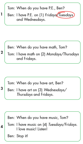 Ben: I have P.E. on Tuesdays and Wednesdays.
