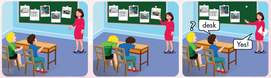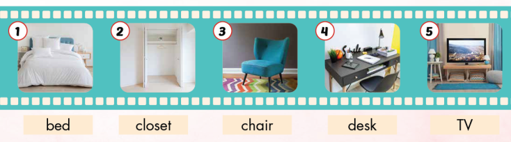 Cách chơi: Cô sẽ dán thẻ có các hình bất kì (bed, closet, chair, TV, desk…) lên bảng, các bạn nhìn qua một lượt và ghi nhớ có những thẻ hình nào. Cô sẽ lấy đi bất kì một thẻ nào, các bạn dưới lớp úp mặt xuống bàn và không được nhìn lên bảng. Khi cô đã hoàn thành và hỏi thẻ hình nào bị thiếu thì các bạn mới ngẩng đầu lên, nhìn lên bảng và trả lời nhanh.