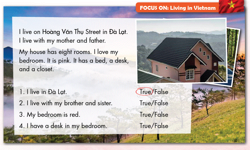 1. I live in Đà Lạt. True (Tôi sống ở Đà Lạt. Đúng)