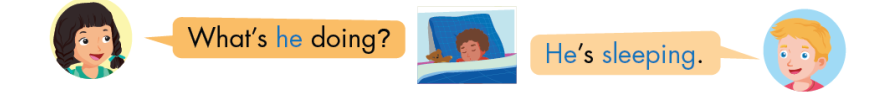 What’s he doing? (Anh ấy đang làm gì?)