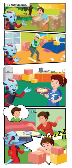 Grandpa Dan: She's (2) cooking. (Cô ấy đang nấu ăn.)
