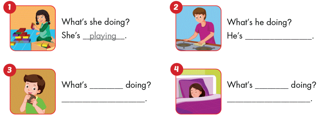 What’s he/she doing? (Anh ấy/Cô ấy đang làm gì?)