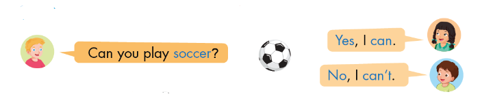 1. A: Can you play soccer? (Bạn có thể chơi đá bóng không?)