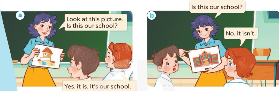 3. A: Look! Is this your classroom? (Nhìn kìa! Đây có phải lớp của chúng ta không?)