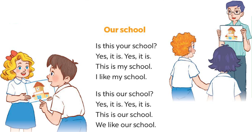 (Đây có phải trường của chúng ta không? - Vâng, đúng rồi.)