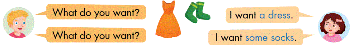 B: I want some socks. (Tôi muốn một vài đôi vớ.)