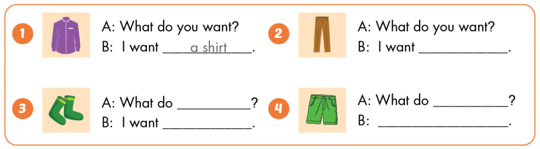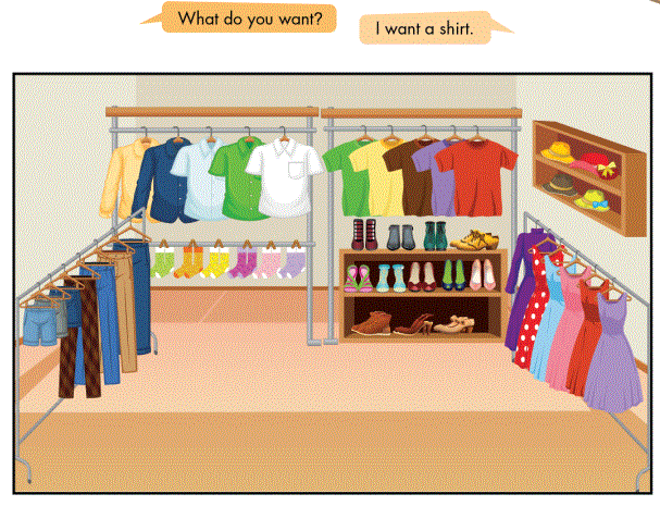 B: I want a shirt. (Tôi muốn cái áo sơ mi.)