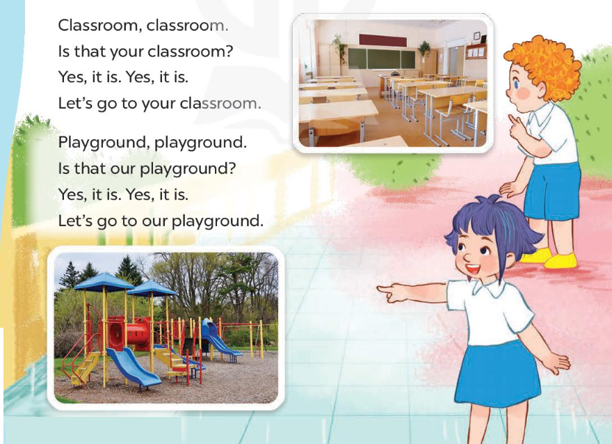 Let’s go to your classroom. (Hãy đi đến lớp học của bạn nào.)