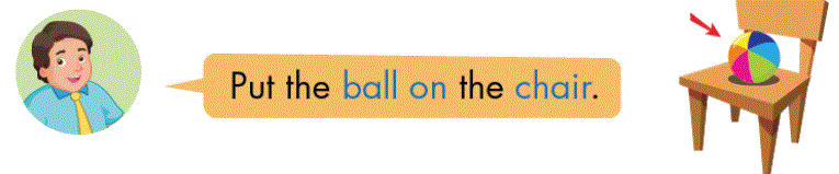 Put the ball on the chair. (Đặt quả bóng lên trên ghế.)
