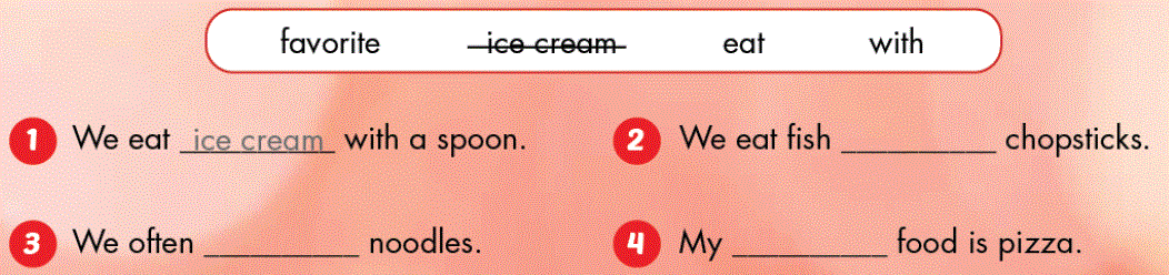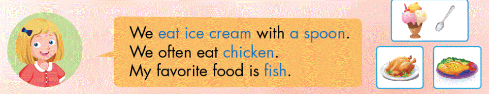 1. We eat ice cream with a spoon. (Chúng tôi ăn kem bằng muỗng.)
