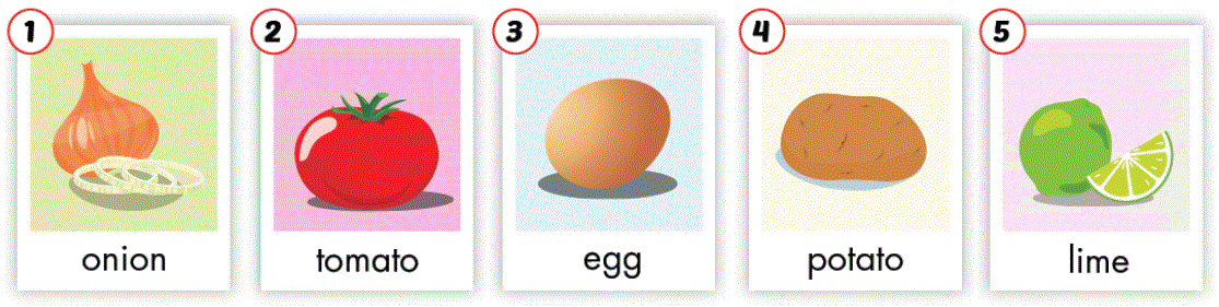 A. 1. Listen and point. Repeat. 2. Play Board race. B. 1. Listen and practice. 2. Read and match. Practice. C. 1. Listen and repeat. 2. Chant. D. 1. Look and listen. 2. Listen and number. 3. Practice with your friends. E. Point, ask and answer. F. Draw the food in your fridge. Ask and answer.