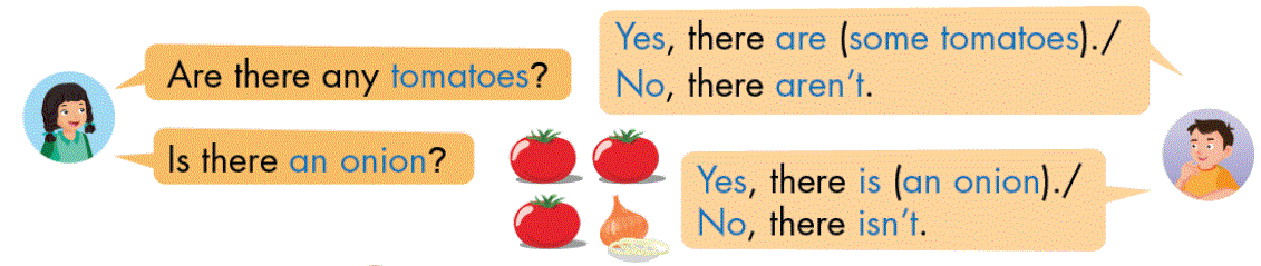 1. Are there any tomatoes? (Có quả cà chua nào không?)