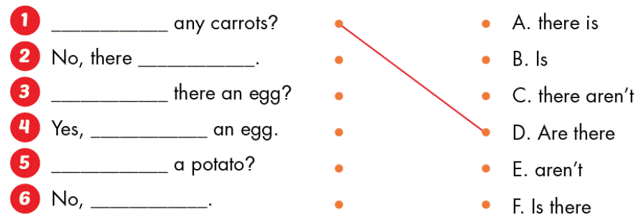 5. Are there any carrots? (Có củ cà rốt nào không?)