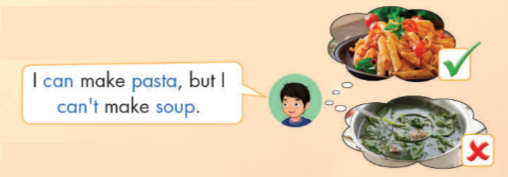 2. Tôi thích nấu ăn với chị gái của tôi. Chị ấy không thể làm món bánh kếp, nhưng chị ấy có thể làm món súp.