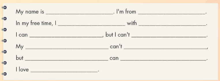 1. I’m from the UK. I like cooking. I can make pancakes, but I can’t make salad.