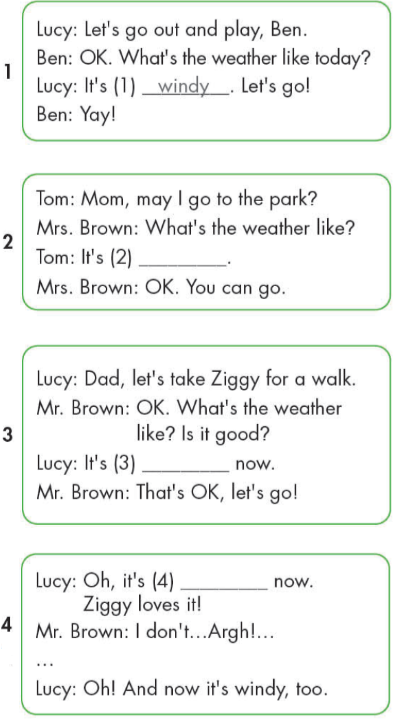 Mrs Brown: OK, What’s the weather like? Is it good!