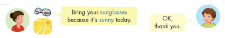 Mrs. Brown: Wait! Bring your sunglasses because it’s sunny today.