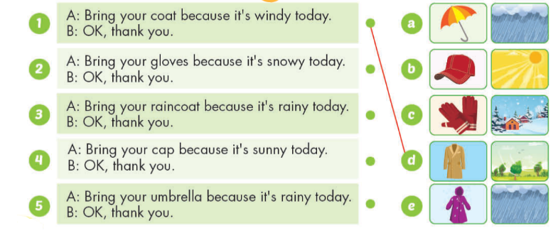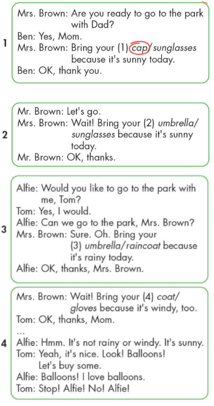 Mrs. Brown: Sure. Oh, Bring your raincoat because it’s rainy today.