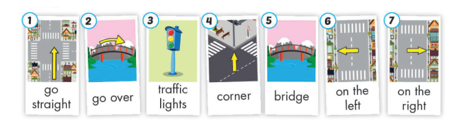 Listen and point. Repeat. Play Heads up. What’s missing? Listen and practice. Look and write. Practice. Listen and repeat. Chant. Look and listen. Listen and write. Role-play. Point, ask and answer. Ask for directions.