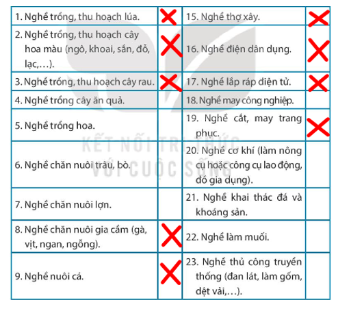 Ở địa phương em có những nghề nào trong những nghề sau: