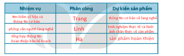 Điền nội dung thích hợp vào Kế hoạch dự án tìm hiểu nghề ở địa phương của nhóm em.