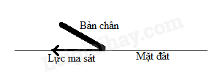 Hãy vẽ phác thảo bàn chân đẩy vào mặt đất theo hình 28.5. Vẽ một mũi tên biểu diễn lực ma sát giúp bàn chân không bị trượt.