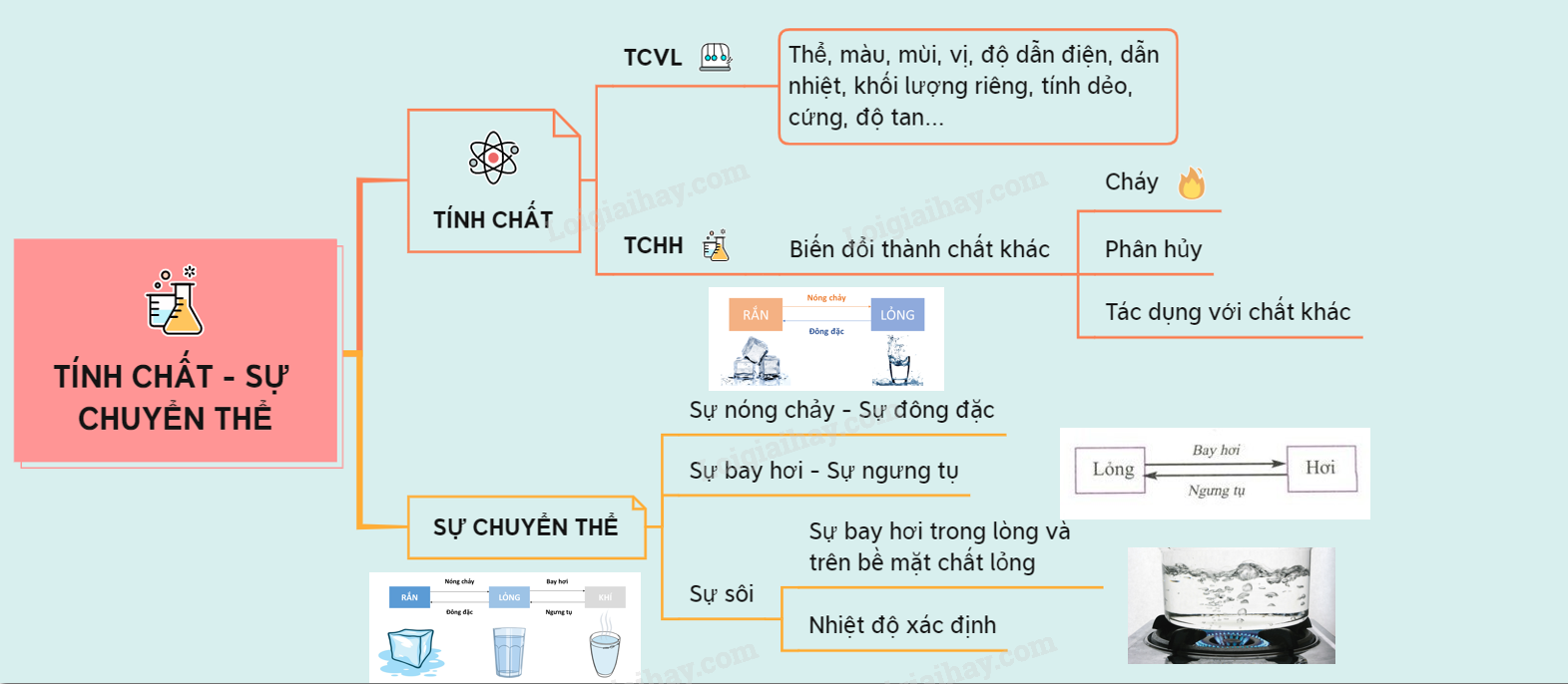 Sơ đồ tư duy: Tính chất và sự chuyển thể của chất