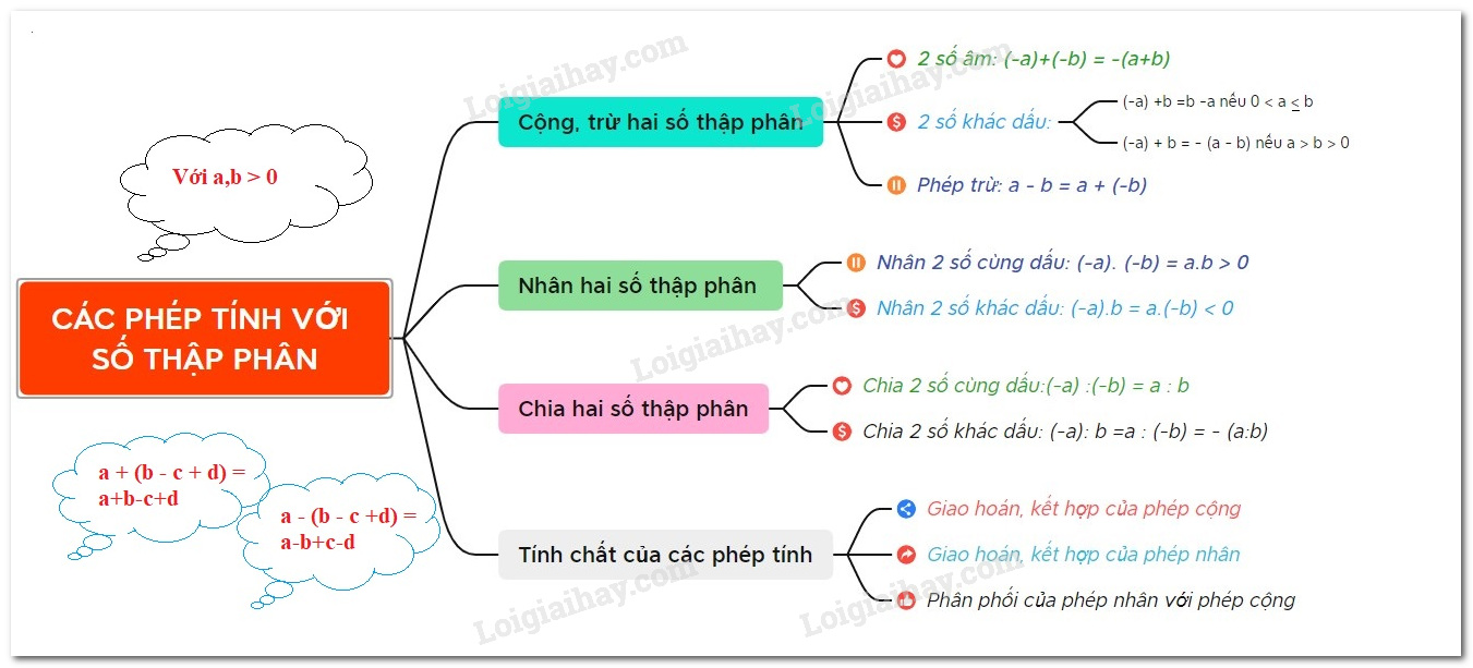 *2 số thập phân cùng dấu thì tích là số dương; 2 số thập phân khác dấu thì tích là số âm
