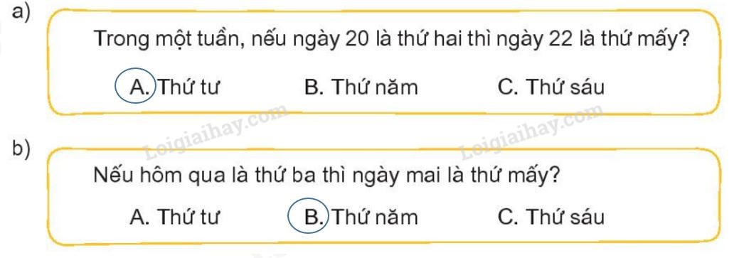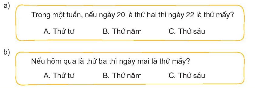 Dựa vào thứ tự các ngày trong tuần để trả lời câu hỏi đề bài.