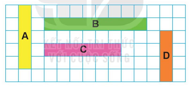 Đếm số ô vuông trong mỗi băng giấy rồi trả lời câu hỏi đề bài.