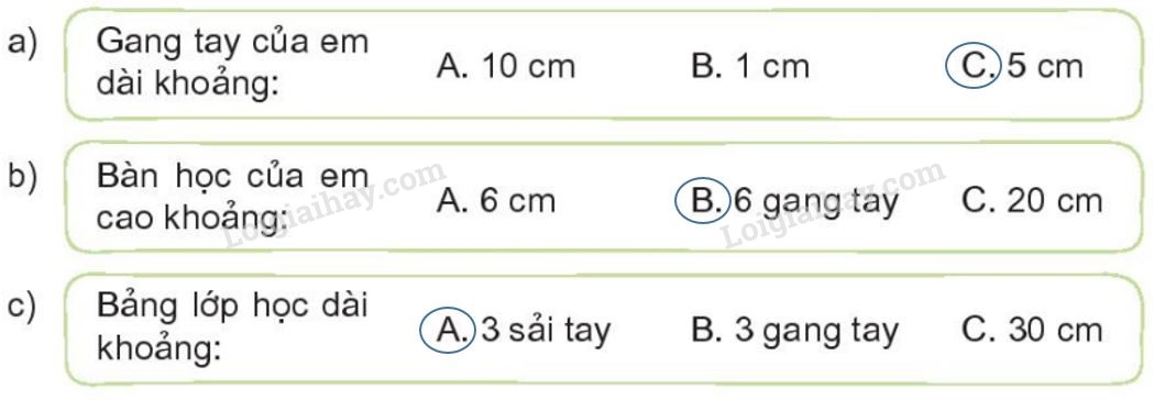 Ước lượng từng vật để chọn đáp án phù hợp.