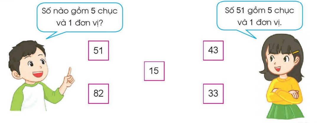 - Số gồm 1 chục và 5 đơn vị là 15.
