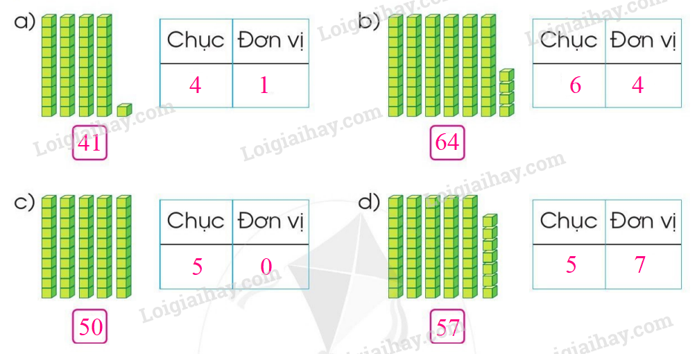 b) Số 63 gồm 6 chục và 3 đơn vị.