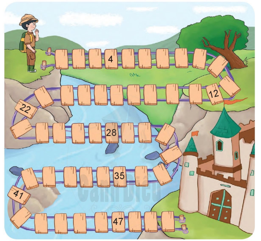 a) Hãy giúp nhà thám hiểm vượt qua cây cầu bằng cách viết các số đã bị xoá:
