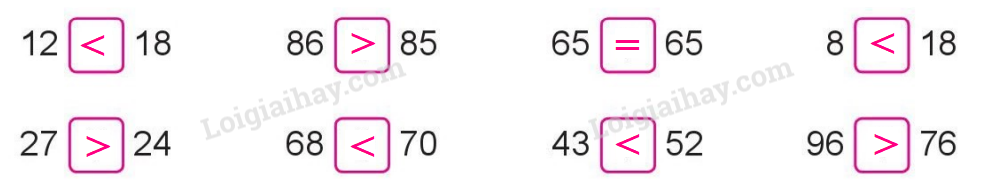 So sánh các số rồi điền dấu thích hợp vào chỗ trống.